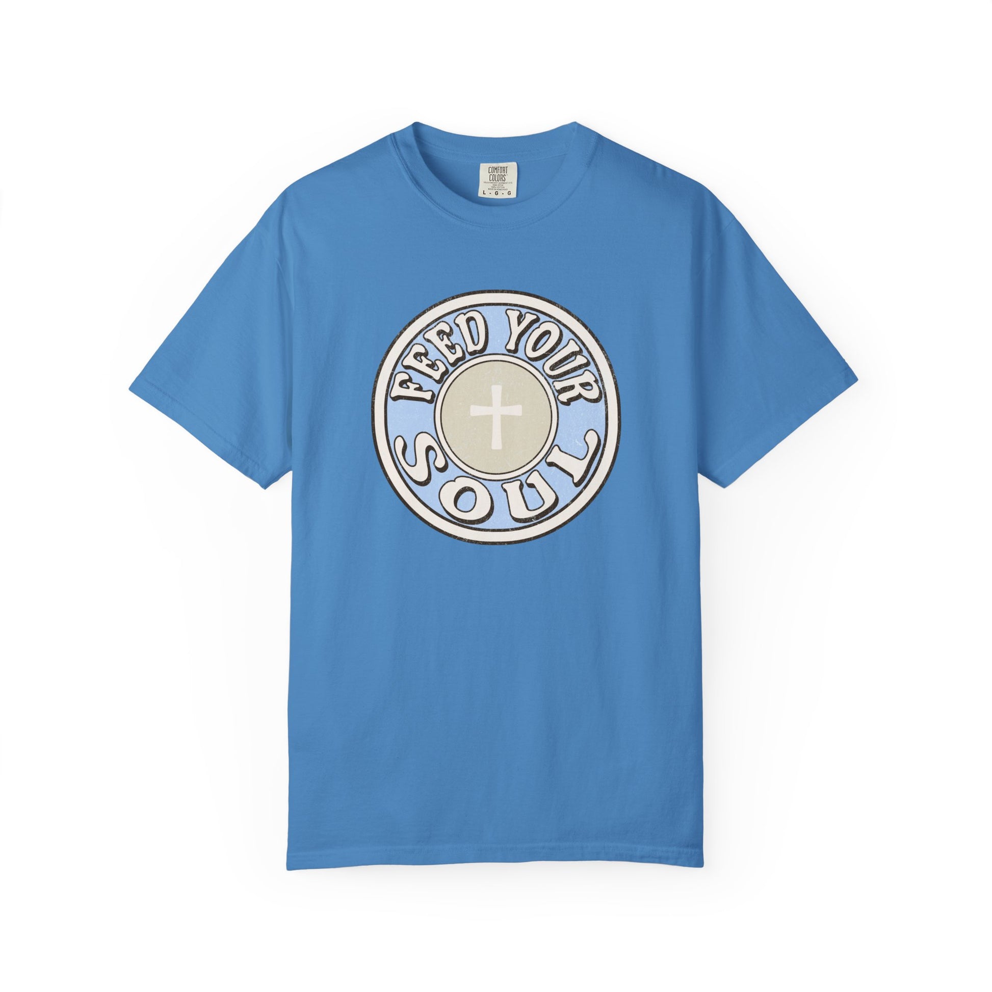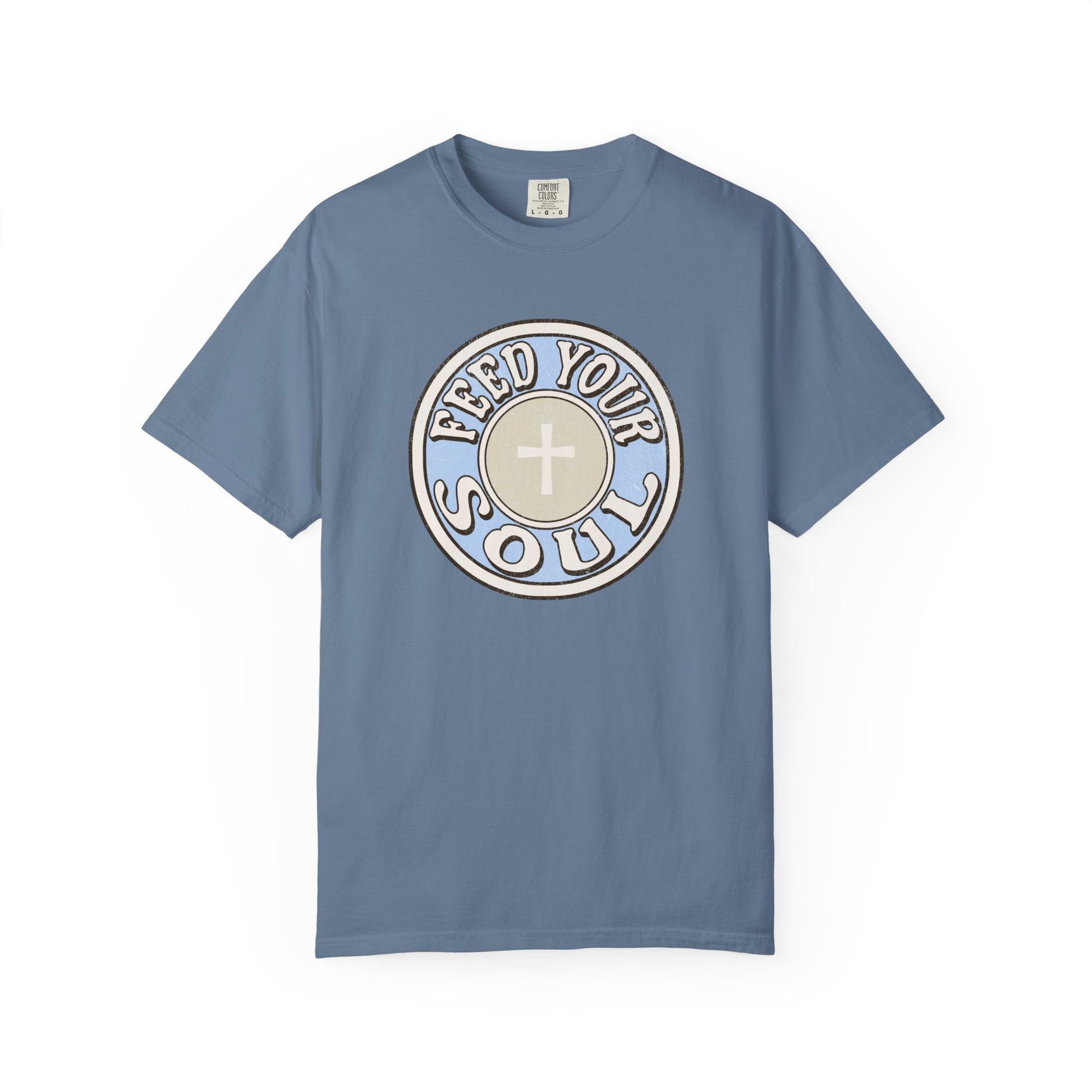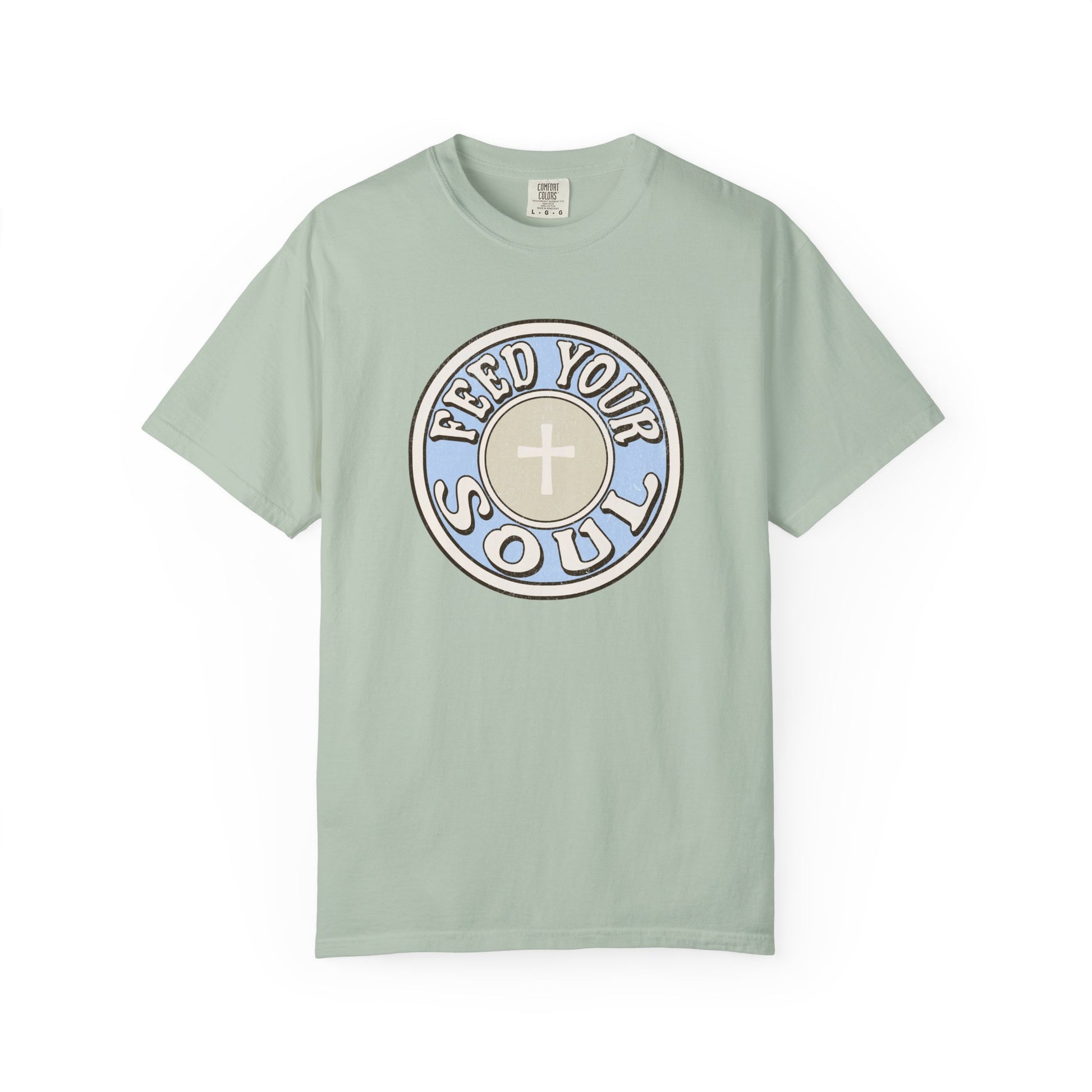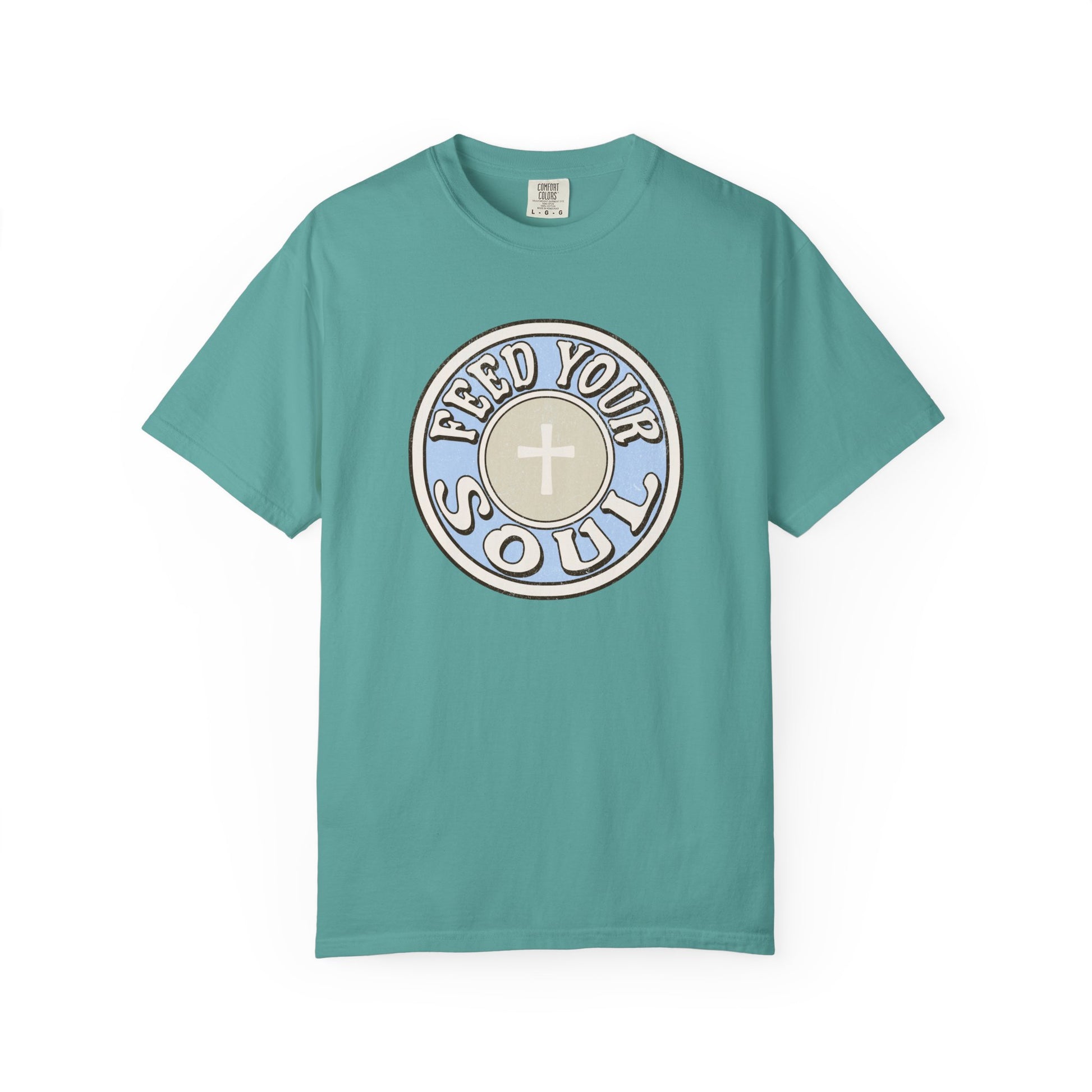 This feed your soul design is a subtle reference to the Eucharist, where we receive Jesus, the nourishment for our souls. Share your faith in a unique way with this design,Â