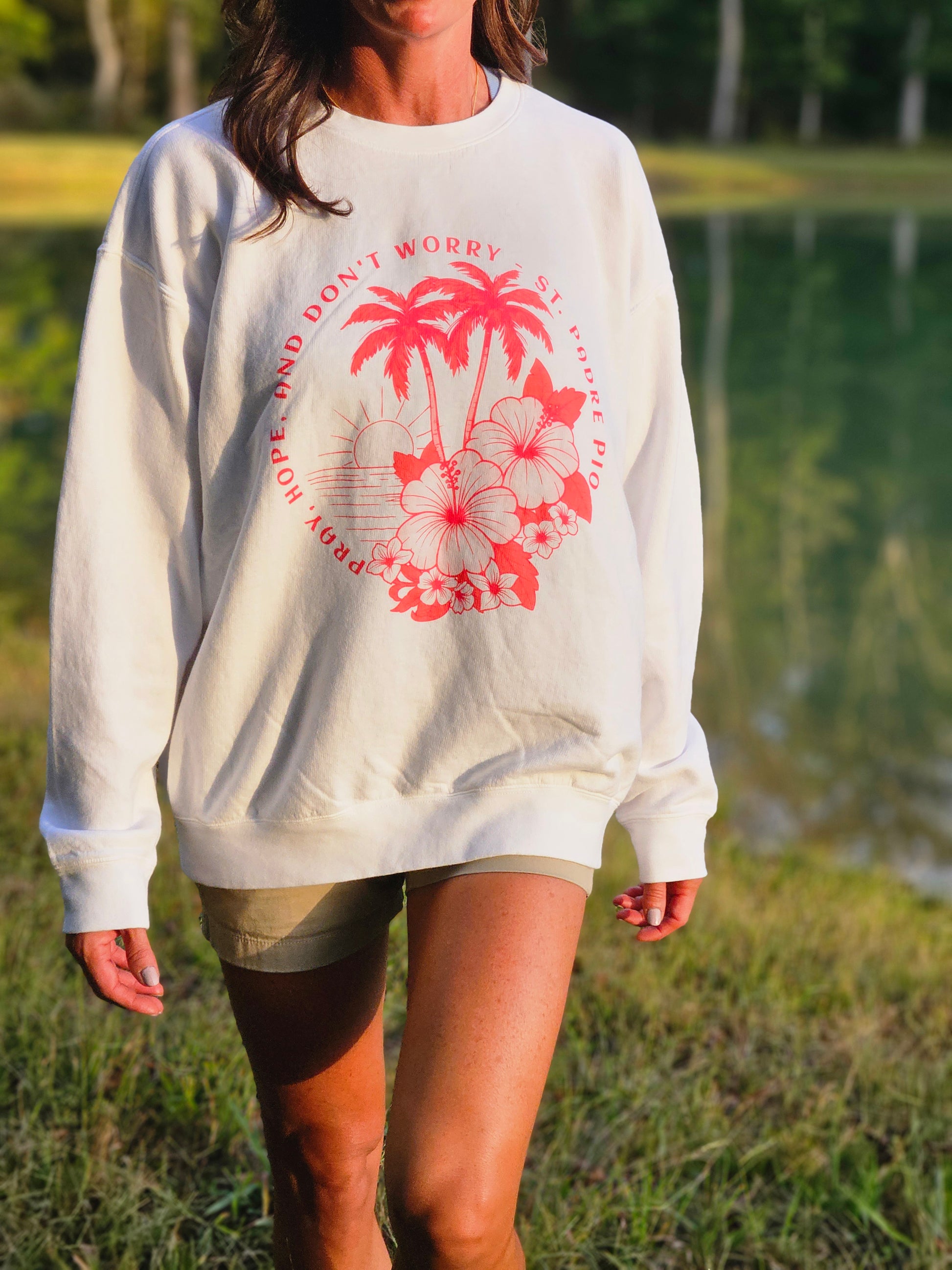 Pray, Hope, Don't Worry - Saint Padre Pio Quote Graphic Lightweight Sweatshirt