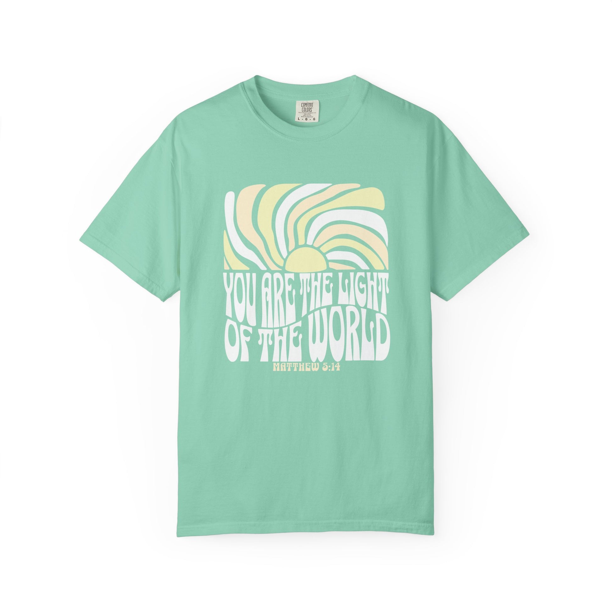 This graphic t-shirt comes from Matthew 5:14 - "You are the light of the world. A city set on a mountain cannot be hidden." May we be the light in a world of darkness, that others may encounter Christ through us.